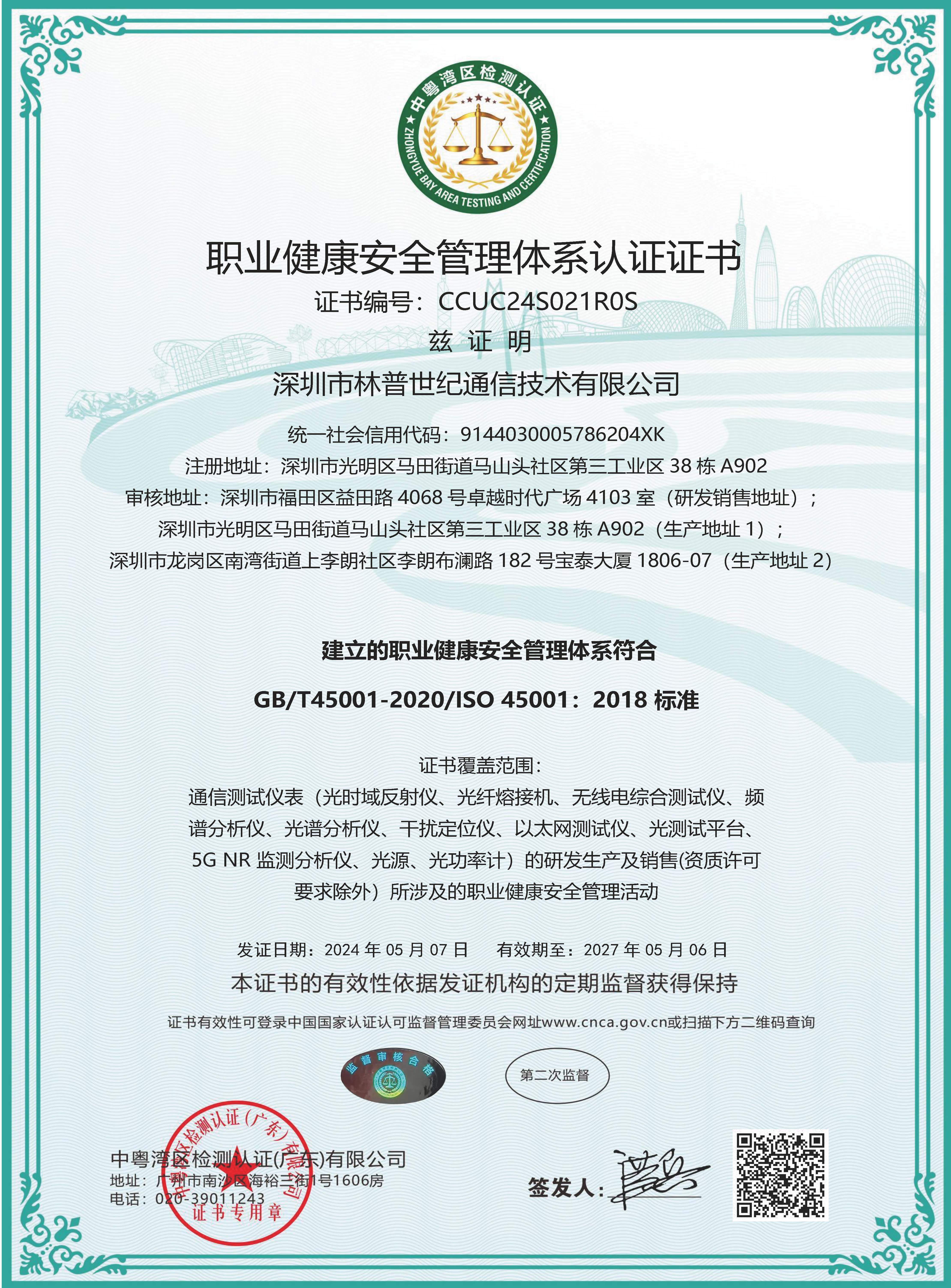職業健(jiàn)康(kāng)安全(quán)管理體係認證證書