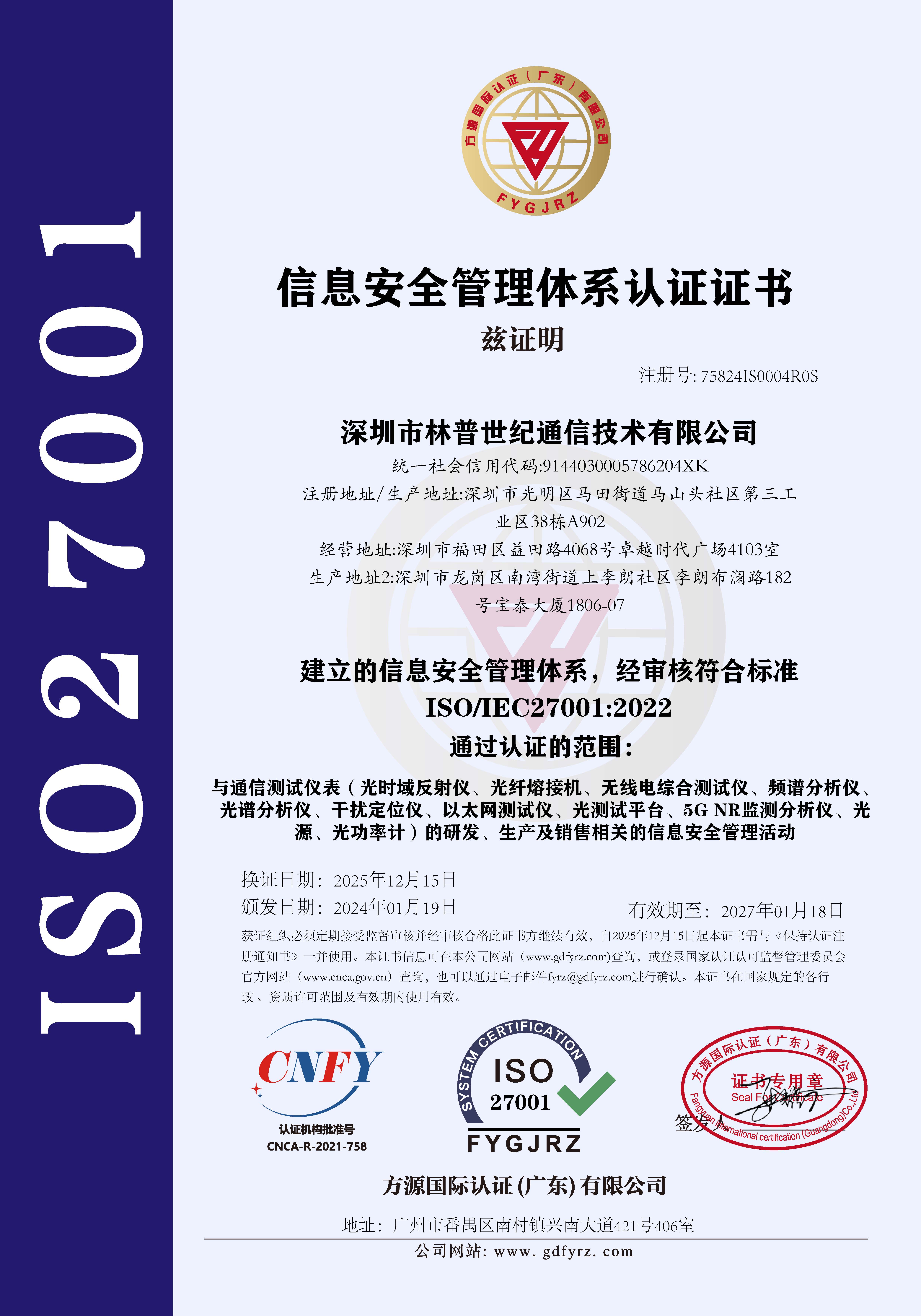 信息安(ān)全管理體係認(rèn)證證書(shū)
