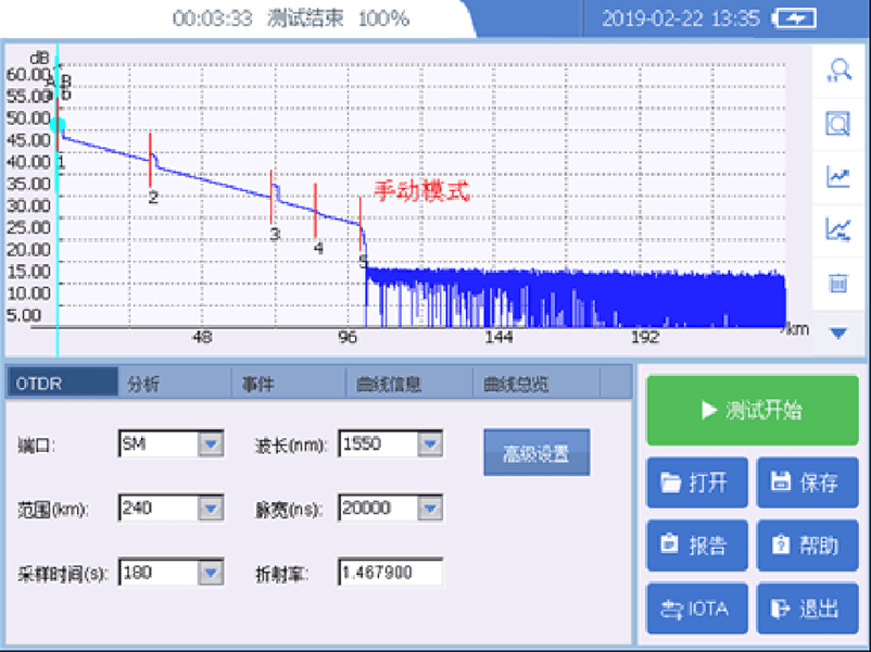 Short enough blind zones (0.8m event blind, 4m attenuation blind) and up to 25600 sampling points to ensure accurate testing of the PTO30 over the entire fiber link