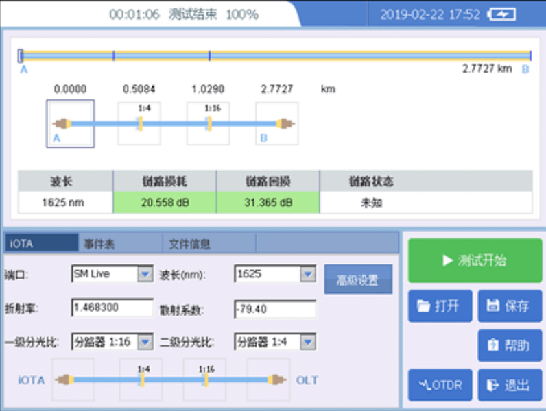 Supports in-line test wavelengths of 1490, 1625, 1650nm with dynamic range of up to 40dB and up to 1:128 beam splitter penetration