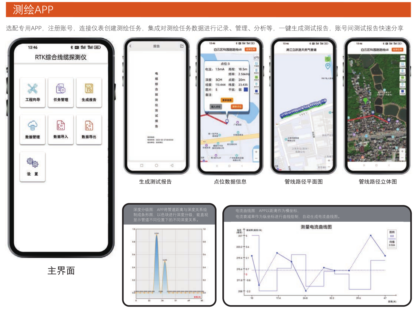 適用於城市綜合管線探測、長輸油氣管線、通信管線、鐵(tiě)路、電力及(jí)非(fēi)開挖行業的管線定位、走向及深度測量。