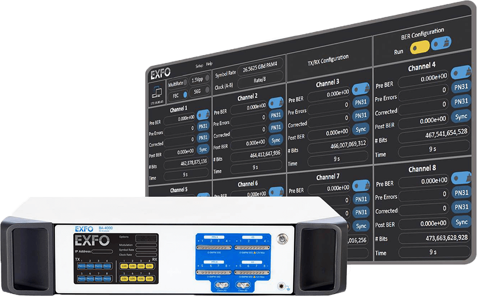 BA-4000-8-56-PAM:400G/800G誤碼率分析(xī)儀,適用於(yú)8通道NRZ 56 Gbit/s或8通道PAM4 56 GBd測試。